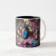 This 11-ounce two-tone ceramic mug features a captivating, artistic design inspired by a whimsical world of glowing clocks and teacups. The vibrant rainbow colors and dreamy, ethereal atmosphere of the Rainbow Time Tea Party design make this mug a standout piece for anyone who appreciates surreal or fantastical art. The black handle and interior provide a sleek contrast to the colorful artwork, adding sophistication to the mug’s overall look. Perfect for enjoying coffee, tea, or hot chocolate, this durable and artistic mug adds a touch of magic to your everyday routine.