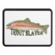 Beautiful rainbow trout in watercolor. Text: Trout Slayer. On white background. Perfect for trout fishing fly fishermen and women!