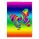 This multi-coloured design displays a wild butterfly silhouette that highlights the colours of the rainbow in an abstract twirl pattern. The seven colours of the rainbow are red, orange, yellow, green, blue, indigo and violet. Other colours of the spectrum that are visible is pink, cyan, and purple. This spiral butterfly design is set against a wide band of rainbow colours.