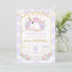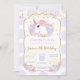 Rainbow Unicorn 1st Birthday Purple Polka Dot Invitation