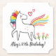 Rainbow Unicorn Birthday Custom Name Paper Coaster