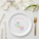 Custom paper plates featuring your child's name with a cute and girly pastel rainbow unicorn artwork. Perfect for a little girl’s unicorn themed birthday party.