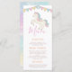A magical day is on the way! Celebrate your kid's magical birthday with this cute unicorn design featuring whimsical unicorn graphics and rainbow sparkle background. (1) Type your text into the template boxes provided. (2) For further customization, please click the "customize further" or "personalize" link and use our design tool to modify this template.