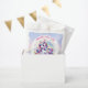 A sweet unicorn themed birthday party personalized thank you favor bag for a little girl. Purple, pink and rainbow design sparkles and hearts. Stuff these with goodies to thank guests for their support!