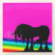 A bright, bold and beautiful unicorn themed coaster featuring a black mystical unicorn and a rainbow background. The perfect coaster for your party drinks.