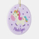 Rainbow Unicorn Glitter Christmas Purple Name Ceramic Ornament