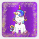 A pretty little purple unicorn sticker featuring a baby unicorn of blue and pink with a gold horn, surrounded by golden glitter. This sticker would make a great unicorn birthday decoration to add to a birthday invitation or envelope, stickers for party hats or party bags or other party favours for your guests.