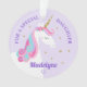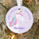 This personalized daughter unicorn ornament features a cute whimsical unicorn design with flowers an faux gold glitter stars. Personalize the text on the front and the back.