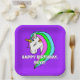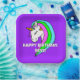 This fun party design features a bright background colour and a happy rainbow mane unicorn. Personalize with your own name and/or message!