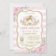 Beautiful kids invitation featuring gold unicorn silhouette adorned with watercolor blush pink flowers and glitter confetti