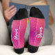 Unicorn lovers will adore these Rainbow Unicorn Pink Glitter Dream Socks. This trendy design has a pink faux glitter background and three pretty white unicorn faces on each sock. The unicorn has light shades of pink, purple, blue, yellow and orange rainbow hair and flowers on top of her head. Customized with the word "Dream" in white calligraphy script lettering on the bottom of each sock.