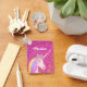 Designed on both sides with bright pink faux glitter sparkles background. It is girly designed with and has a cute white unicorn with rainbow hair and flowers. Personalized with name in white hand lettered script. Makes a great birthday gift idea for unicorn lovers!