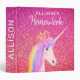 Rainbow Unicorn Pink Glitter Homework Personalized Binder