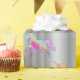 A pretty unicorn wrapping paper most suitable for a little girl's unicorn birthday gifts, unicorn party decorations (or even for scrapbooking) featuring a pattern of rainbow coloured unicorns scattered over a silver background.