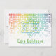 This non-traditional gamer inspired video gaming design features a Jewish star of David. There are also brightly coloured rainbow raining or cascading digital style computer pixels along the top of the card. The fonts are techno computer style. There is binary code at the bottom for more high tech style.