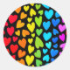 Rainbow Watercolor Hearts Pattern Classic Round Sticker