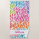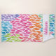 Rainbow Watercolor Leaves Pattern Pretty Feminine Personalized Beach Towel. Gorgeous watercolor leaves in green, yellow, orange, pink, blue and purple. Pretty pattern with white background. Personalize with name in pretty pink font on white stripe. www.SamAnnDesigns.com