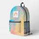 This cute backpack features a rainbow colour background in watercolor with a rainbow illustration and your name. Personalize it for your needs.