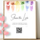 Wedding sign with QR code with rainbow roses. You need to generate and upload your own QR code. Gay lesbian wedding pedestal sign with rainbow roses. Photo sharing sign, honeymoon fund sign, in lieu of gifts charity fund sign with QR code. For smaller sizes, you need to adjust the flowers image size.