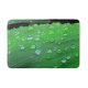 The image on this Bath Mat is an original closeup photograph by ZoeSPEAK of raindrops on a Manilla palm frond. The spring green frond is curved, giving us views of the water droplets from different angles. At the top of the curve we see a horizon of raindrops against the dark background. As the frond curves around, the droplets have bright highlights, and become smaller toward the underside in shadow.