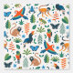 Check out this fun tropical pattern with rainforest jungle animals and leaves on white background.