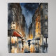 Rainy city watercolor art poster
