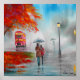 Rainy day autumn red bus umbrella painting poster