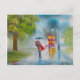 Rainy day red tram romantic couple umbrella postcard