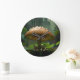 Rainy Day Refuge: Frogs Sheltering Under Mushroom Large Clock