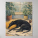 Capture the peaceful charm of a cozy indoor moment with this beautifully textured artwork featuring a graceful black greyhound resting beside a soft cushion. Set against a rain-speckled window, lush green houseplants frame the scene, while a warm cup of coffee and an open book add a touch of quiet comfort. This calming composition evokes relaxation, mindfulness, and the simple beauty of home life—perfect for dog lovers, plant enthusiasts, and anyone who appreciates tranquil, aesthetic spaces. Ideal for home décor, gifts, and cozy lifestyle products.