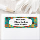 These return address labels have a mid-century modern design of rounded rectangles, in gold, orange, brown, deep red, and dark teal, with holes and thin turquoise lines on top of them looking like rain. If you like the design but prefer different colours, message me.