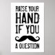 Funny design reminding students to raise their hand if they have a question. Raise your hand if you moustache - must ask a question.