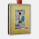I was impressed by the quality and size of the ornament. Metal framing and design were perfect. Definitely recommend any of the metal framed ornaments. I ordered different ones all of the same quality and personalized professionally. Perfect No pictures as they were all gifts