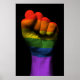 Raised Clenched Fist with Gay Pride Rainbow Flag Poster