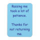 Raising me took a lot of patience. Thanks for not returning me