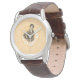 I was uncertain about the size being too small but it looks good. The case looks like aluminum (not shiny) and the time is easy to see. I changed the band because the leather doesn't go with my lifestyle.a. Exactly what I expected, nice yellow. It grabs peoples attention.