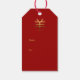 Golden Ram Symbol with an embossed digital effect on red gift tag. You can easily change background colour and add text by clicking the customize button. Matching wrapping paper, tissue paper, greeting card, postage and more... Perfect for Chinese New Year of The Ram or Goat 2027 or Birthday (people born in Ram or Goat year).-------- The Goat (Chinese: 羊; pinyin: yáng) is the eighth sign of the 12-year cycle of animals that appear in the Chinese zodiac related to the Chinese calendar. The sign is also referred to as the Ram or Sheep sign, since the Chinese word yáng is more accurately translated as Caprinae, a taxonomic subfamily which includes both sheep and goats. (...) People born within these date ranges can be said to have been born in the "Year of the Goat", while also bearing the following elemental sign: