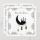 Silhouette for Ramadan with a mosque on a crescent moon and hanging lanterns. Floral border. Background colour may be changed.