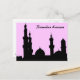 A mosque silhouetted against a pink background. A Ramadan or Eid greeting - customize the text.