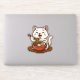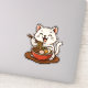 Add a touch of cuteness to your stuff with this adorable ramen cat sticker! Featuring a happy white cat slurping ramen with chopsticks while sitting cutely at a wooden table, this charming cartoon design is full of rich colours and delightful details — from soft-boiled egg and narutomaki to beef slices and green onions.