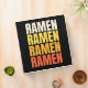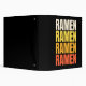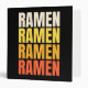 Simple colourful text design with "Ramen, Ramen, Ramen, Ramen" text in beige, yellow, orange and red colours