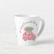 Ce design de vacances de base Latte Mug dispose d'une voiture rouge avec un arbre à feuillage persistant. Le texte en arche dit, "Ramenez à la maison l'arbre de Noël" et il peut être customisé.