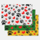 Random Cartoon Dog Paw Prints And Red Hearts Wrapping Paper Sheet