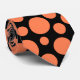 Random placed polka dots, both big and small, make up this striking coral pink on black necktie.