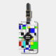 Custom luggage tags with geometric shapes inspired by the work of Piet Mondrian. Irregular lines forming squares and rectangles. Decorative retro style digital art.
