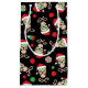 A pattern of Christmas themed sugar skulls with a Santa hats, peppermint eyes and candy cane crossbones surrounded by Christmas candies.