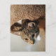 This is a photograph taken of my cat, Ranger. She is a short hair domestic brown tabby, and she likes to play peek-a-boo in her cat tower. I snapped this picture while she was hanging down through a hole in the top level. This adorable postcard is great for cat lovers and postcrossers alike.