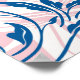 In the centre of the artwork, a pink and white Rangoli bird takes centre stage, its feathers and wings composed of intricate geometric patterns and delicate floral designs. The bird is surrounded by a blue flower frame, which highlights its beauty and creates a sense of movement and dynamism!