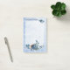 La liste des "choses à ne pas oublier" et peint des fleurs oubliées, pas des fleurs sur le dessus et le bas des notes. C'est une analogie avec les fleurs de l'oubli-me-pas et la liste avec les choses à ne pas oublier. Déposez vos tâches importantes et assurez-vous de ne jamais les oublier. Le design des post-it notes est dans les tons bleus et a l'air très romantique, chic et un peu vintage.