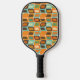Cette pagaie à pickleball a un design moderne du milieu du siècle de rectangles arrondis penchés sur le côté avec des rectangles inclinés à l'intérieur faits de lignes dans les couleurs des années 1970.